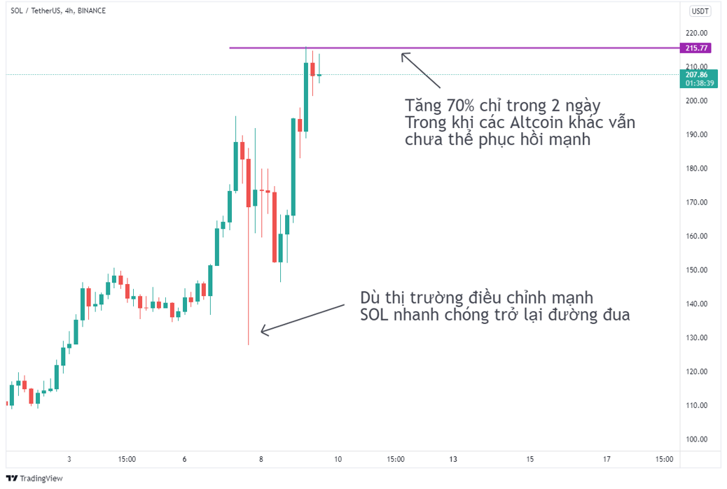 Trong khi Bitcoin sụt giá gần 20% và nhiều Altcoin vẫn chưa thể phục hồi lại đỉnh cũ. Thì chỉ trong 2 ngày, Solana (SOL) lội ngược dòng, bức tốc vượt đỉnh cũ là lập đỉnh mới còn xa hơn thế.