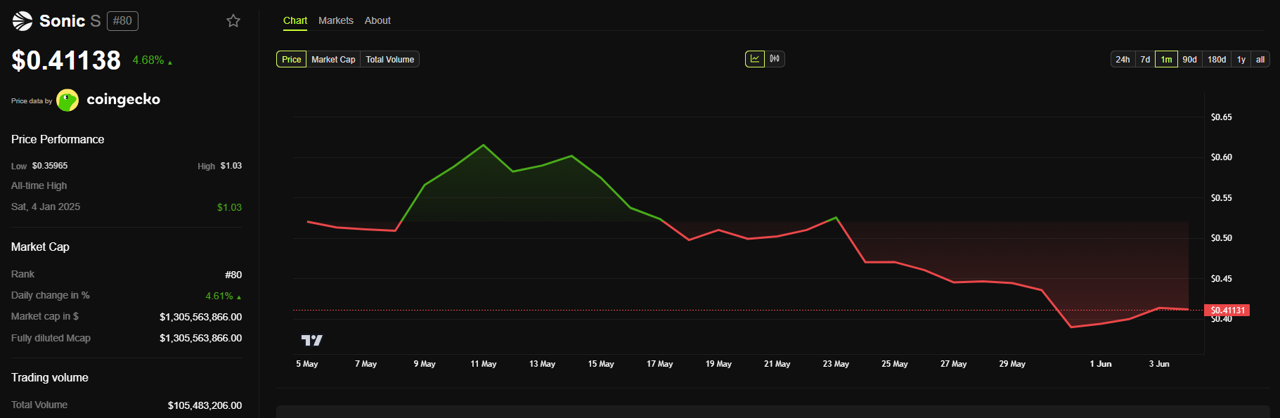 Sonic đã đưa ra thông báo này khi giá của S đã giảm hơn 30% kể từ đầu tháng 05. Hơn 190 triệu token S được phân phối hiện có giá trị hơn 76 triệu USD.