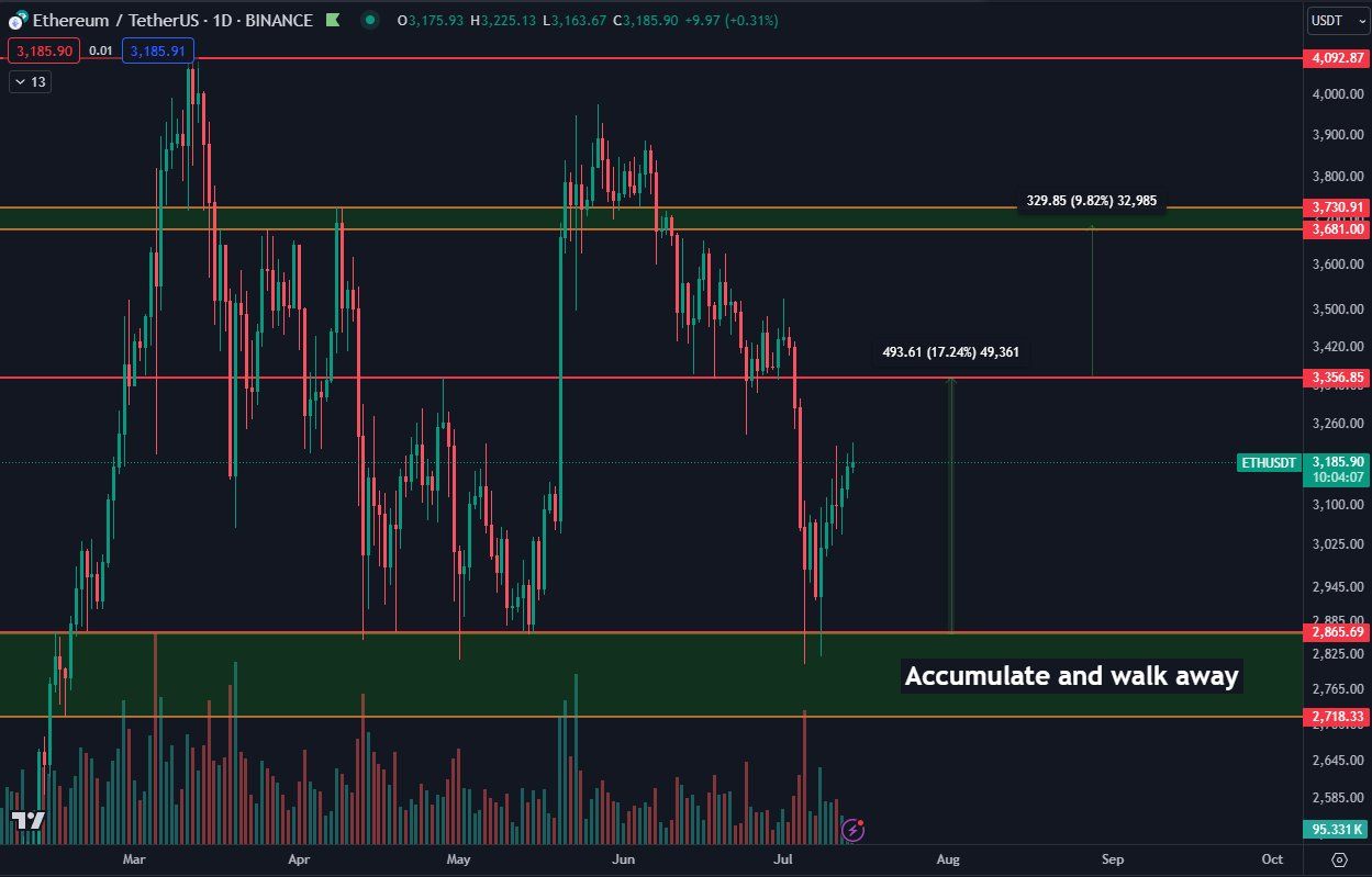 “ETH đến nay rất tốt. Đang tiến gần đến mức 3,350 USD. Chúng ta nên nhận được sự chấp thuận S-1 trong tuần này, với các quỹ ETF bắt đầu giao dịch ngay sau đó,”
