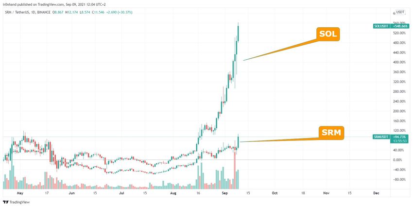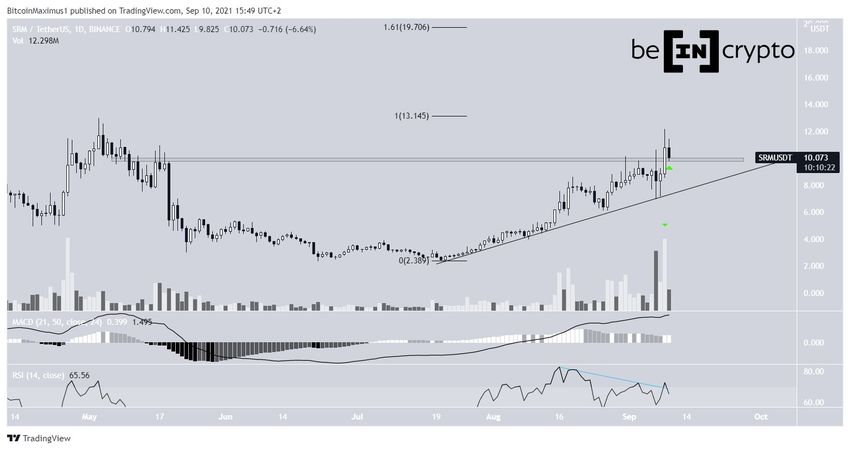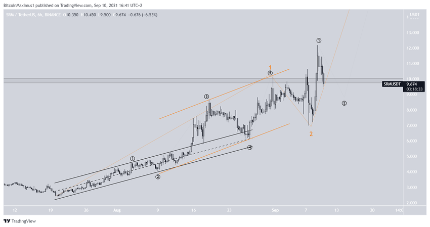 Kể từ ngày 20 tháng 7, giá của SRM đã tăng theo đường hỗ trợ tăng dần. Đến ngày 31 tháng 8, tiền điện tử đã cố gắng vượt qua vùng kháng cự 10 USD, nhưng không thành công.