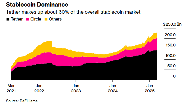 Vốn hóa thị trường stablecoin đã tăng 90% kể từ cuối năm 2023, vượt qua 230 tỷ USD. Những token kỹ thuật số này duy trì giá trị ổn định bằng cách được hỗ trợ bởi dự trữ.