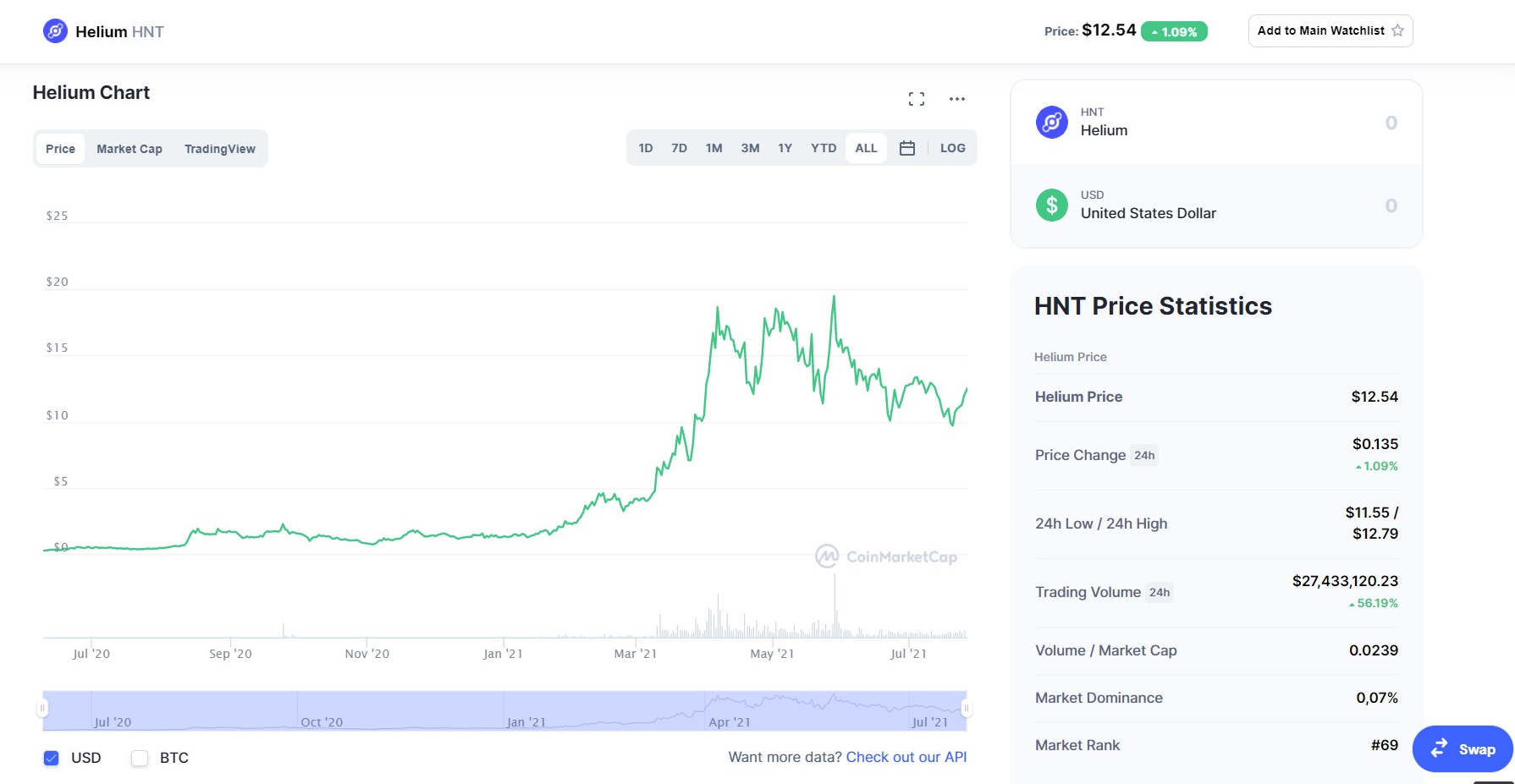 Tại thời điểm viết bài, giá HNT đang hoạt động tại mức 12.54 USD. Tại thời điểm vàng, mức ATH của HNT là khoảng 23,900 USD.
