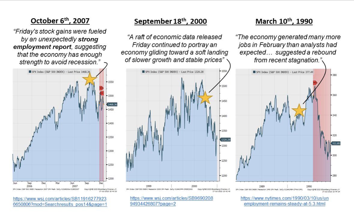 Tỷ lệ thất nghiệp gần đây nhất của Hoa Kỳ vẫn thấp hơn so với dự kiến. Dù lãi suất đã được FED đẩy lên mức cao của 22 năm qua. Cổ phiếu những tháng qua đã chứng kiến đà phục hồi rất ấn tượng đến mức trở lại gần vùng đỉnh cũ. Nhưng quá khứ đang cảnh báo một kịch bản tồi tệ vẫn có khả năng đang chờ trước mắt.