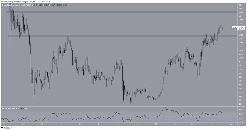 Tổng vốn hóa thị trường tiền điện tử (TOTALCAP) đã hình thành một nến giảm vào ngày 17/4. Bitcoin (BTC) đã giảm sau khi tạo ra sự phân kỳ giảm giá. Rocket Pool (RPL) đang ở rất gần với mức giá ATH mới.