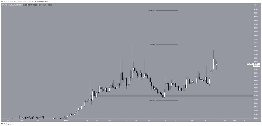 Nếu xu hướng giảm giá tiếp tục, RPL có thể giảm xuống còn 35 USD. Ngược lại, nếu giá chuyển sang xu hướng tăng, altcoin này có thể tăng lên 91.60 USD.