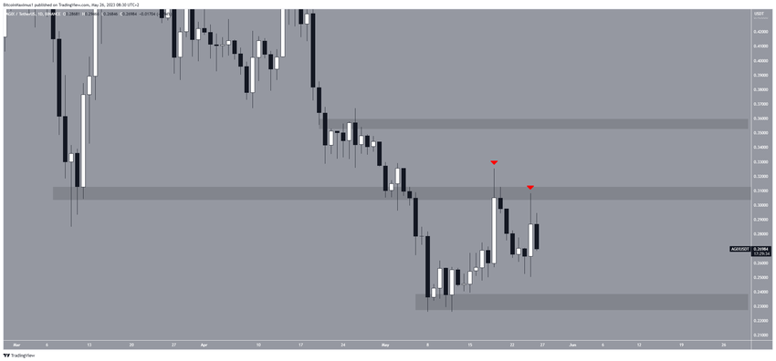 Nếu xu hướng giảm tiếp tục, AGIX có thể quay trở lại vùng hỗ trợ ngang 0.23 USD. Mặt khác, một sự đột phá có thể dẫn đến một chuyển động tiến lên mức 0.36 USD.
