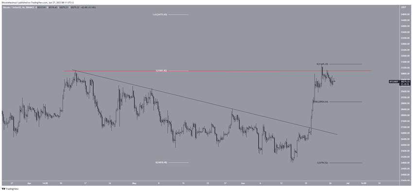 Giá Bitcoin đạt mức cao mới hàng năm là 31,431 USD vào ngày 23/6. Nó đã đạt được như vậy sau khi bứt phá khỏi đường kháng cự giảm dần đã hình thành kể từ mức đỉnh hàng năm trước đó. Đây là dấu hiệu cho thấy đợt điều chỉnh trước đó đã kết thúc.