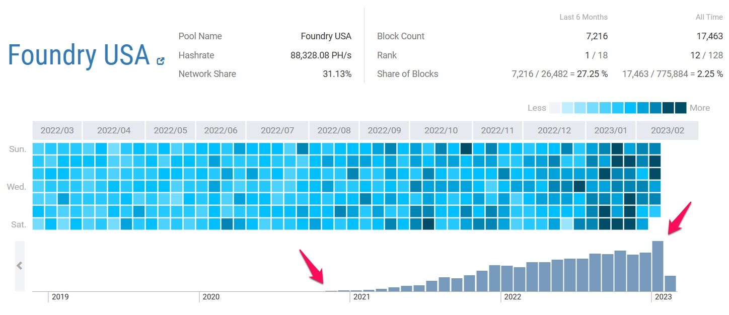 Trong bối cảnh Miners nhỏ lẻ ngày càng khó khăn vì sự cạnh tranh quá lớn và giá Bitcoin giảm mạnh, Foundry USD đã tăng trưởng ngược dòng. Chứng tỏ họ có tiềm lực tài chính rất mạnh.
