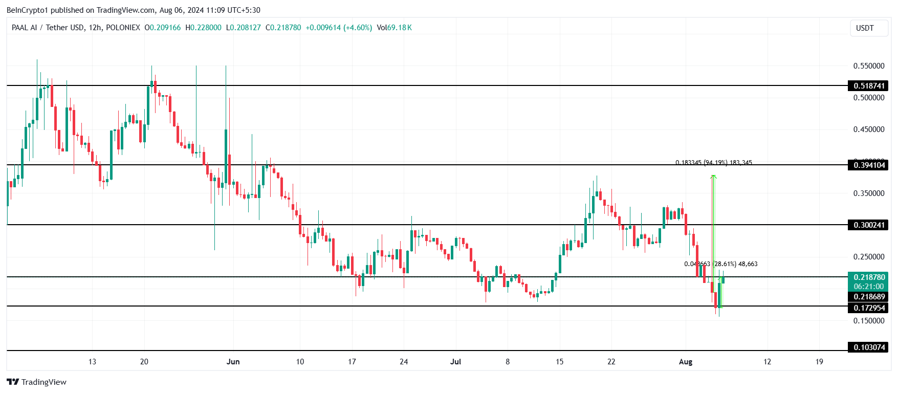 Hơn nữa, trong 24 giờ qua, Altcoin này đã ghi nhận mức tăng 28%, giao dịch ở mức 0.218 USD. PAAL hiện đang cố gắng chuyển mức kháng cự tại 0.218 USD thành hỗ trợ sau khi bật lên từ 0.172 USD. Điều này có thể thúc đẩy sự phục hồi, đưa altcoin trở lại mức trên 0.300 USD.