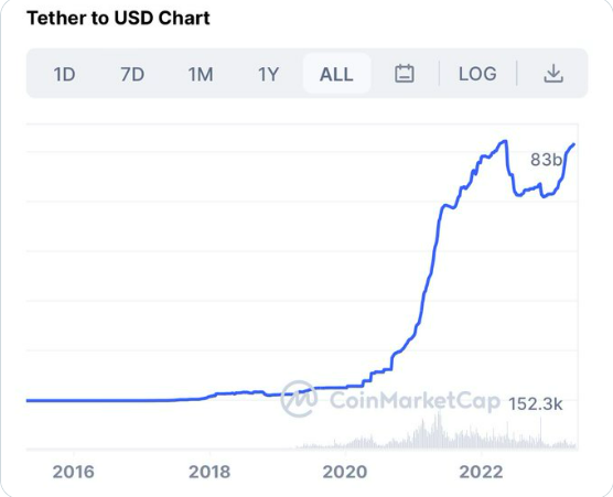 Việc phát hành USDT cũng tăng lên mặc dù các nhà đầu tư có cơ hội kiếm được lợi nhuận cao hơn tại các ngân hàng. Hiện có 83 tỷ đô la Mỹ USDT đang được lưu hành, cho thấy nhu cầu mạnh mẽ đối với đồng đô la kỹ thuật số trong bối cảnh cuộc khủng hoảng ngân hàng tại Hoa Kỳ đang diễn ra.
