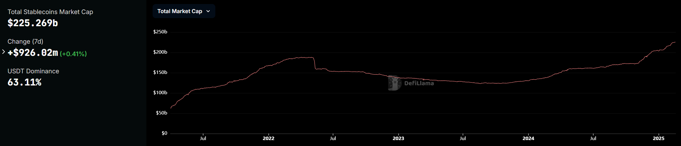 Tổng thể, Pi Protocol có nhiều lợi thế có thể giúp nó vượt qua Tether, nhưng USDT vẫn nắm giữ vững chắc thị trường tiền điện tử toàn cầu. Tổng vốn hóa thị trường stablecoin đã đạt mức cao kỷ lục trong tháng này, và sự thống trị của USDT vẫn mạnh mẽ ở mức 63%.