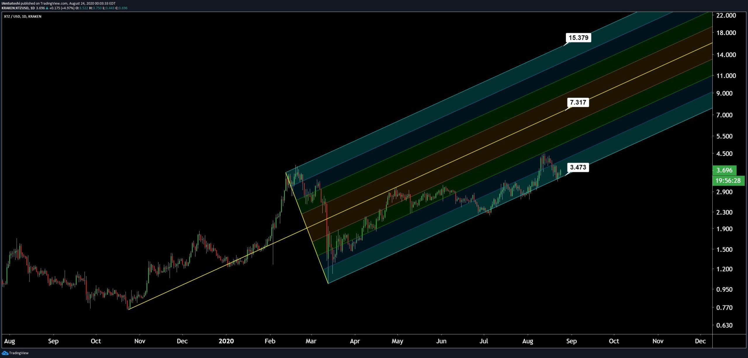 Nếu bị phá vỡ xuống dưỡi ngưỡng này một cách mạnh mẽ thì tiền điện tử Tezos sẽ khó nhanh chóng lấy lại được vị trí trong kênh xu hướng này. Khi đó, nó sẽ đối mặt nguy cơ đi xuống trong trung hạn.