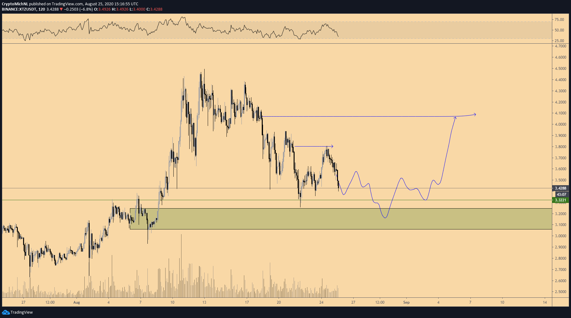 Nhà phân tích @CarpeNoctom cũng cho rằng Tezos đang có nguy cơ phá vỡ xuống dưới biên dưới của một kênh giá tăng quan trọng. Đây là kênh giá đã dẫn dắt xu hướng đi lên nhiều tháng của đồng altcoin này và hiện khu vực này nằm ở vào khoảng 3,40 USD.