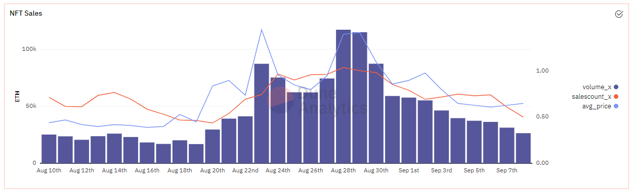 Số liệu NFT Sales cũng giảm mạnh từ đầu tháng 9 đến nay