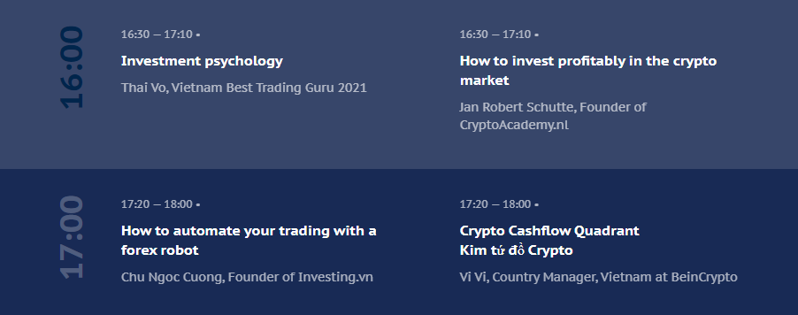 - Thai Vo (Vietnam Best Trading Guru 2021) với chủ đề thấu hiểu về tâm lý trong các hoạt động đầu tư.