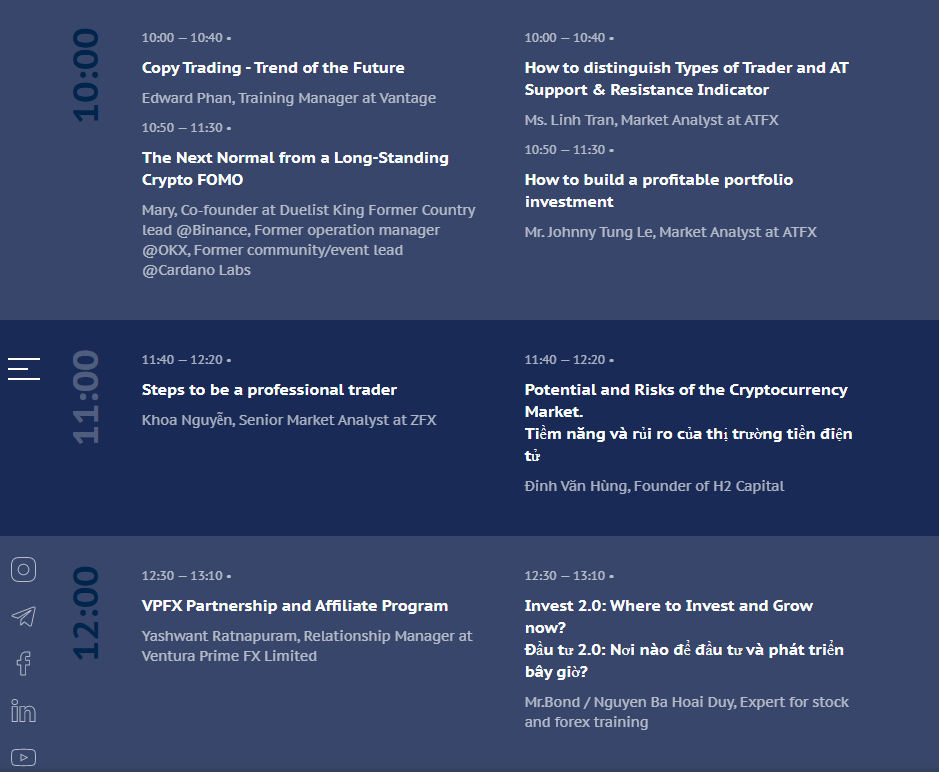- Edward Phan (Training Manager của Vantage) sẽ diễn thuyết với chủ đề Copy Trading liệu có phải là xu hướng của tương lai.