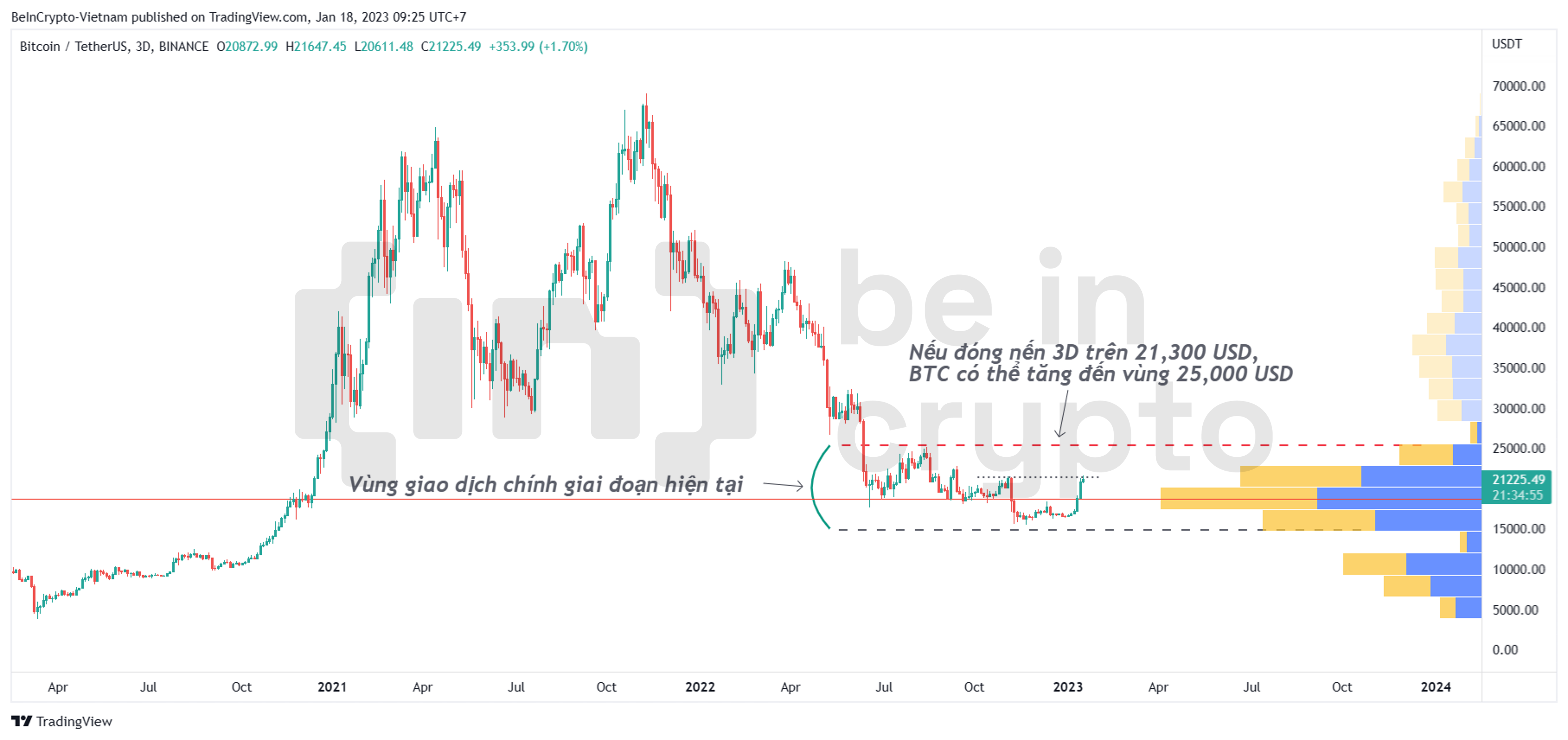 Như phân tích trước, BTC đã tăng đến vùng 21,300 USD và hiện đang chững lại tại vùng kháng cự quan trọng này. Nếu tín hiệu khung 2W trên thành hiện thực, thì mức giá tiếp theo sẽ là bao nhiêu?