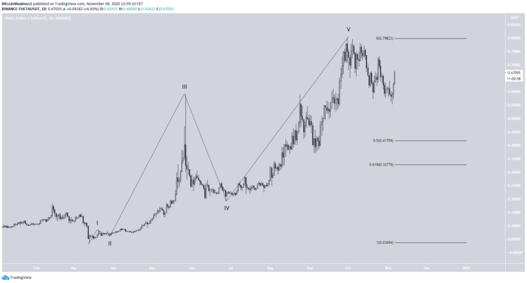 Do đó, khả năng lớn là tăng trưởng hiện tại là một hồi phục nhẹ hơn là khởi đầu của một làn sóng đi lên mới. Sau khi đã hoàn thành đợt tăng trưởng nhẹ thì giá của THETA được kỳ vọng sẽ giảm xuống tới khu vực 2.900 – 3.200 satoshi.