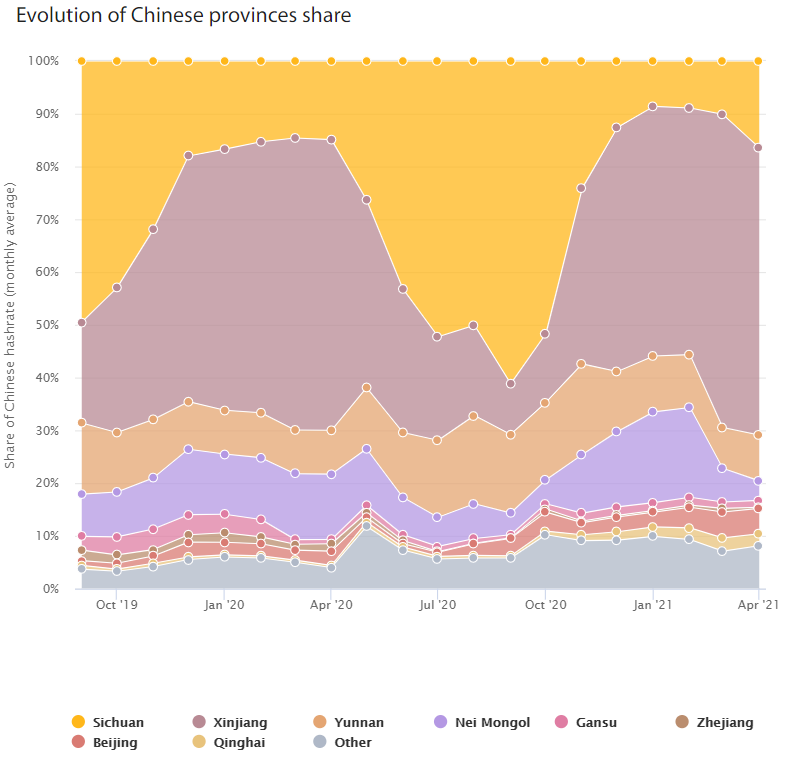 SponsoredNgay bên trong Trung Quốc, hashrate cũng có sự phân bố không đồng đều.