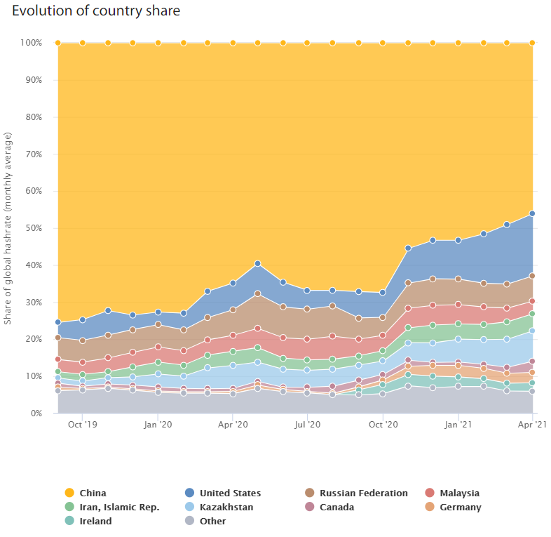 - Thay vào đó, lượng hashrate phân bổ đều hơn ra các quốc gia khác. Và xu hướng này dường như vẫn chưa dừng lại.