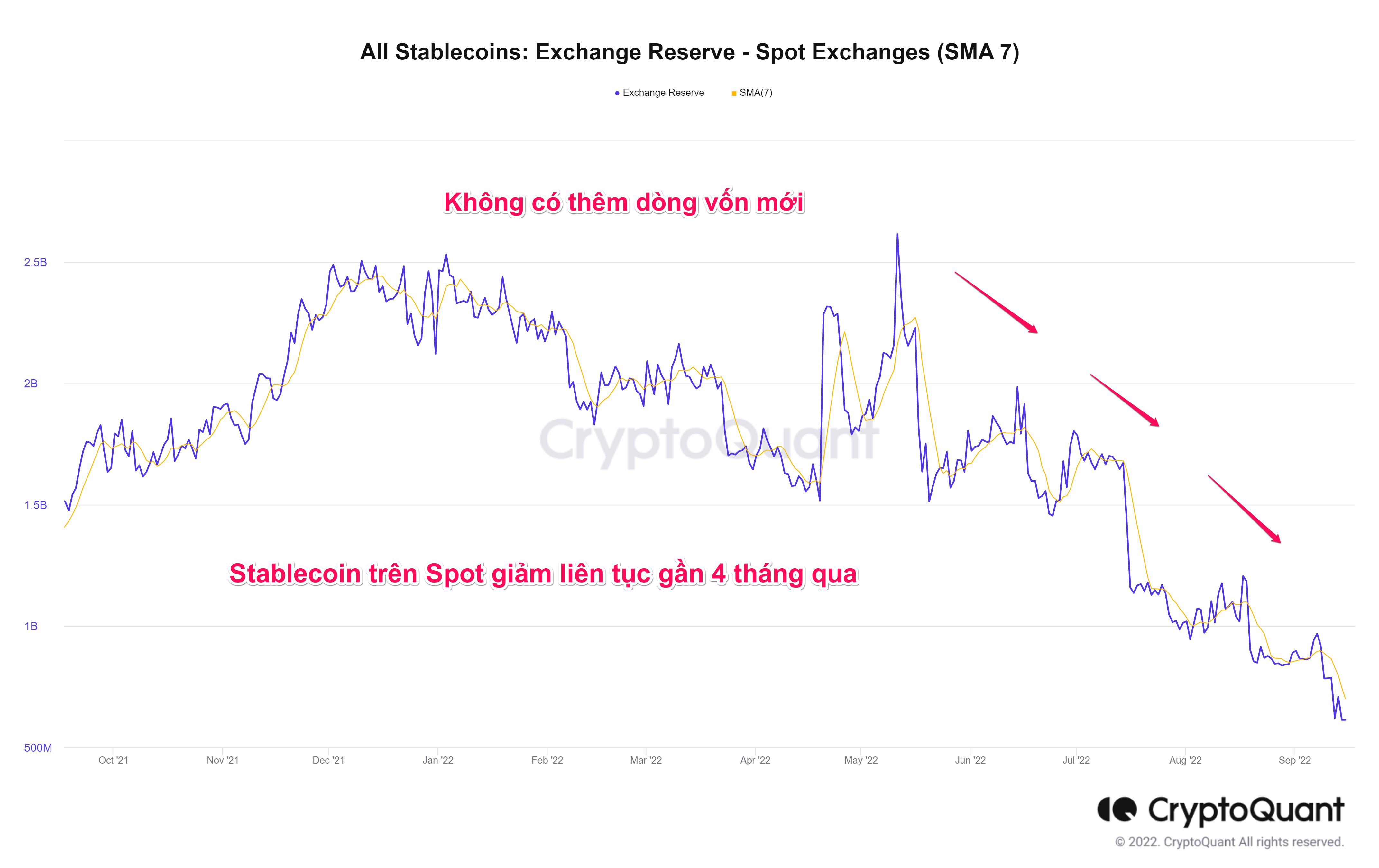 Nếu stablecoin trên spot giảm liên tục thì phần stablecoin còn lại đi đâu? Có hai hướng, thứ nhất là được cash out ra khỏi thị trường, thứ hai là lại tiếp tục được đẩy vào phái sinh. Cả hai hướng này không hề mang lại chút động lực phục hồi nào.