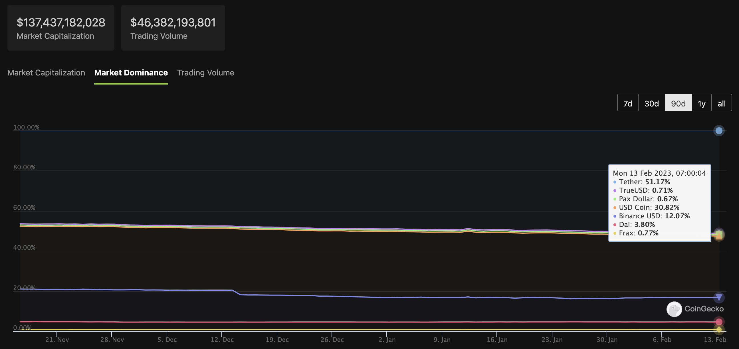 Binance USD, hay BUSD, là một stablecoin được chốt bằng đồng đô la. Binance và Paxos đã ra mắt nó vào năm 2019. Trong một tuyên bố, Binance cho biết họ sẽ tiếp tục theo dõi tình hình và việc Paxos phát hành và sở hữu BUSD. Tại thời điểm viết bài, tổng vốn hoá thị trường stablecoin hiện ở mức 137.4 tỷ USD. Trong đó, BUSD nắm giữ 12.07% thị phần. Vị trí số 1 và 2 vẫn là USDT (51.17%) và USDC (30.82%).