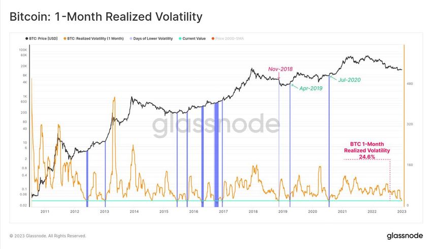 Thị trường tiền điện tử đã hoạt động ít biến động trong 9 tuần qua. Theo phân tích trên chuỗi, những giai đoạn biến động thấp như vậy thường xảy ra trước một động thái lớn.