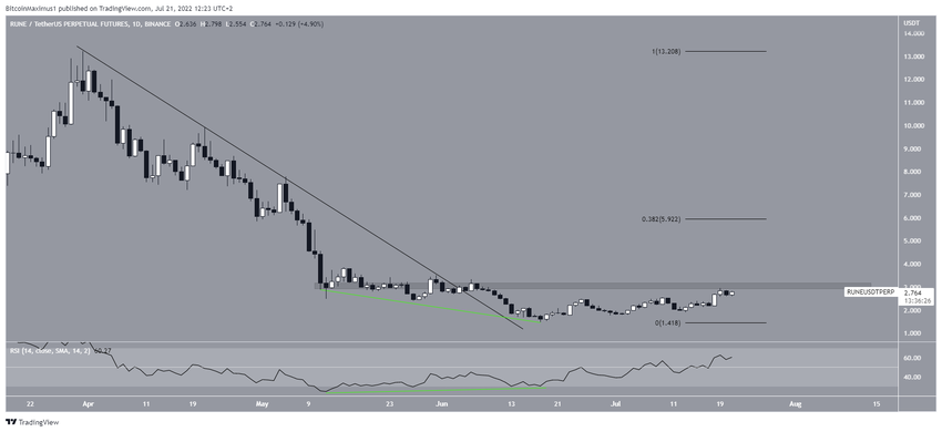 THORChain (RUNE) đã được giao dịch bên trong một mô hình điều chỉnh kể từ ngày 18 tháng 6 nhưng hiện đang cố gắng thoát ra khỏi mô hình này. Nếu RUNE thành công bứt phá mức kháng cự 3 USD, sự đảo chiều sang xu hướng tăng giá sẽ được xác nhận.