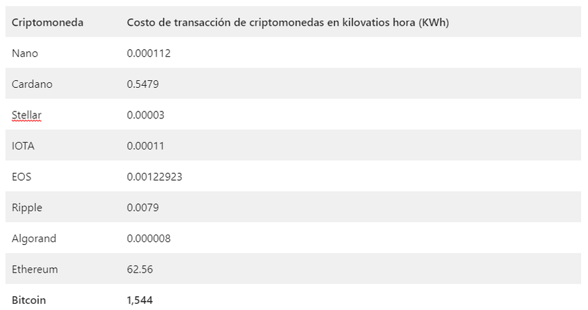 Dưới đây là so sánh giữa một số loại tiền điện tử có tính xanh và bền vững hơn so với Bitcoin. Các phân tích đa phần liên quan đến mức tiêu thụ năng lượng cho một giao dịch.