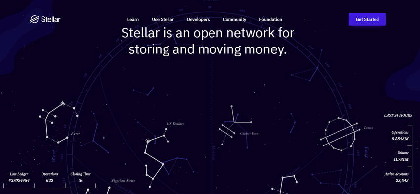 Stellar là một mạng lưới được thành lập vào năm 2014 như một nhánh rẽ của mạng Ripple. Nền tảng hoạt động như một loại tiền điện tử tiết kiệm năng lượng. Chỉ một số nút phân tán được chọn mới được yêu cầu để thực hiện mỗi giao dịch.