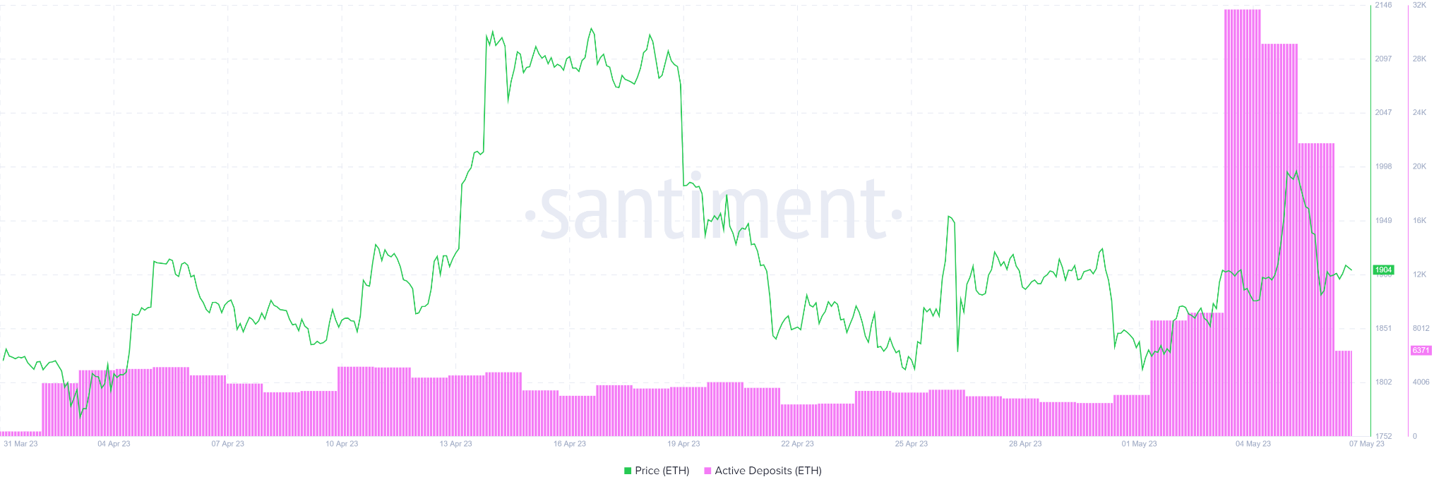 Với những quan sát trước đó, Santiment lưu ý rằng sự gia tăng đột biến trong các khoản tiền gửi Ethereum đang hoạt động thường báo trước sự biến động về giá của ETH.