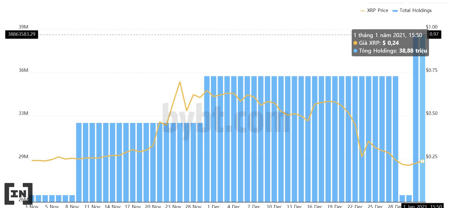 Qua bảng thống kê danh mục đầu tư tiền điện tử, quỹ đầu tư này đã có quyết định mua khá liều lĩnh. Vào buổi chiều ngày 31/12/2020, Grayscale đã khớp lệnh mua hơn 12 triệu USD với giá 0,23 USD/XRP.