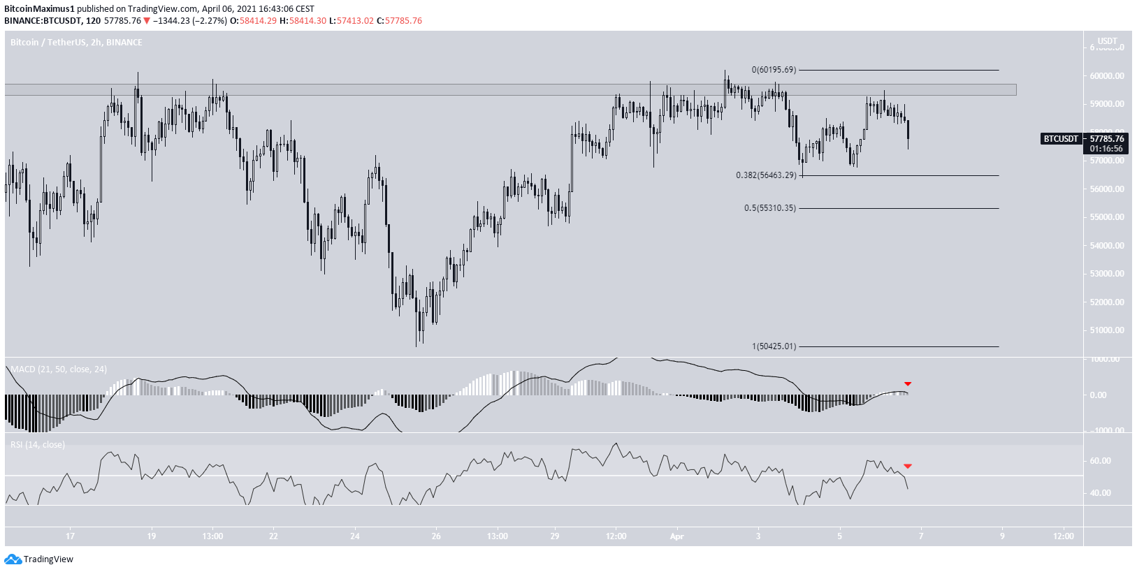 Kể từ khi Bitcoin bị từ chối tại vùng kháng cự 59,500 USD vào đầu ngày hôm nay. Giá BTC đã giảm đáng kể và hoạt động dưới vùng kháng cự mạnh.