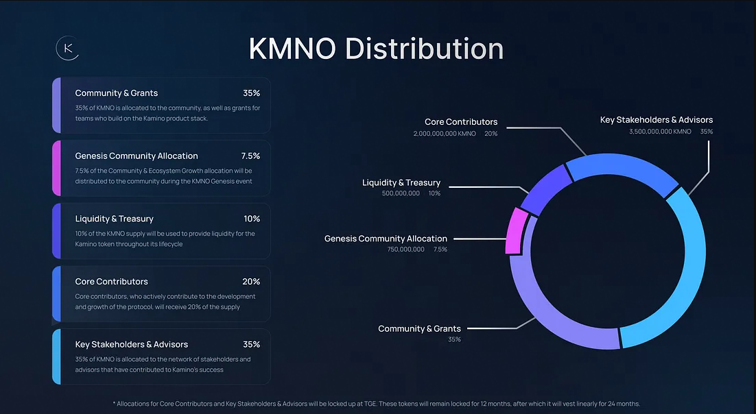 Một sự phát triển đáng kể khác đến từ Kamino. Thị trường tiền tệ hàng đầu dựa trên Solana sẽ phát hành mã thông báo KMNO vào ngày 30/4. 35% nguồn cung được dành riêng cho các sáng kiến tăng trưởng và một phần đáng kể được phân bổ cho những người đóng góp và cố vấn cốt lõi.
