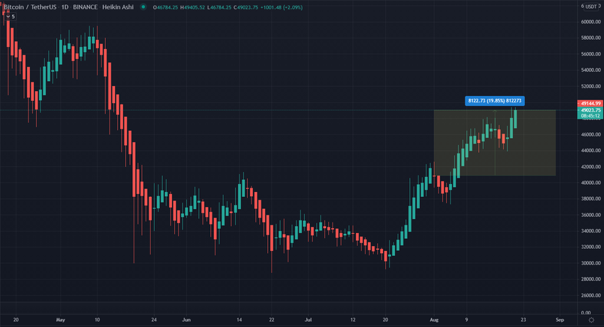 Tháng 8 là một tháng ta chứng kiến thấy sự tăng trưởng mạnh mẽ của Bitcoin. Bởi từ đầu tháng đến giờ, giá trị của tiền điện tử này đã tăng 20%. Sự phát triển của Bitcoin cũng đồng thời có lợi cho các altcoin khi chúng cũng có những sự tăng trưởng ấn tượng.