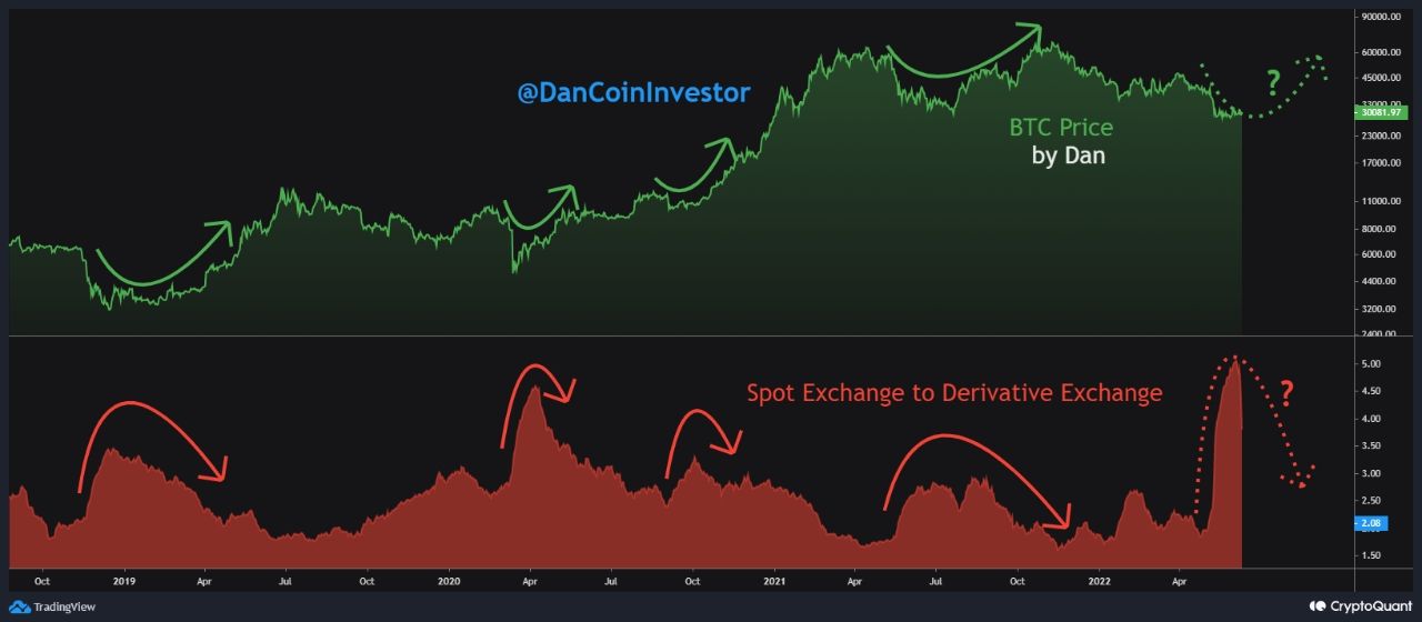 - Gần đây, lượng BTC chuyển vào phái sinh bắt đầu thể hiện xu hướng giảm. Do đó, phân tích trên của @DanCoinInvestor cho rằng đó như một tín hiệu dự báo sự phục hồi của Bitcoin.