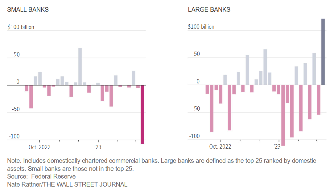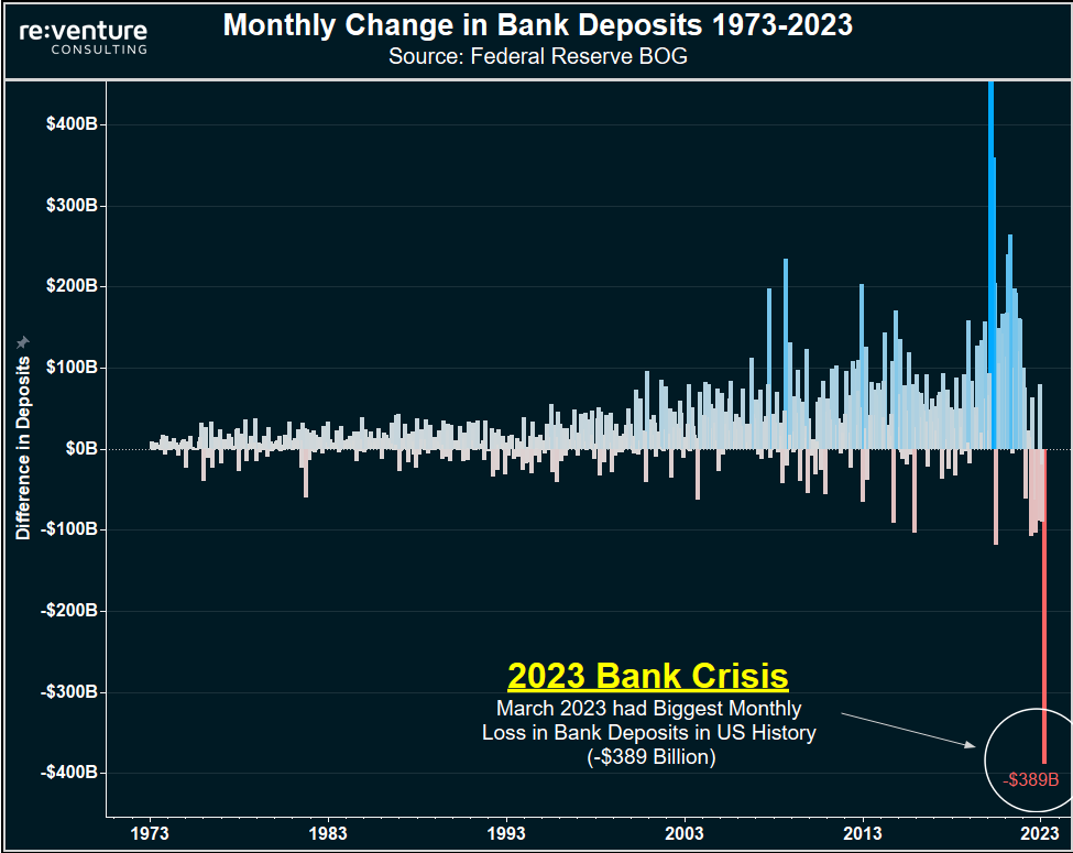 RIêng trong tháng 3 vừa qua, lượng tiền gửi giảm mạnh đến 389 tỷ USD. Và đây là mức suy giảm tiền gửi chưa từng có trong lịch sử ngân hàng Mỹ kể từ năm 1973 cho đến nay.