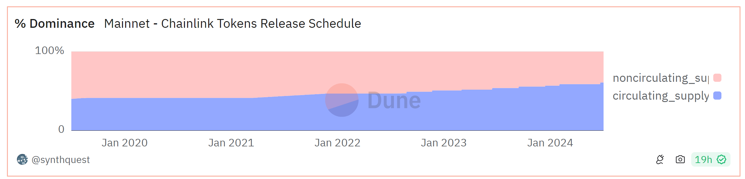 Mặc dù có những tiến bộ này, giá của Chainlink vẫn chưa phản ánh cùng một xu hướng tăng. Hiện tại, LINK đang được giao dịch ở mức 14.41 USD, giảm 72.6% so với mức cao nhất mọi thời đại là 52.70 USD vào tháng 05/2021. Các nhà phân tích cho rằng điều này do nguồn cung lưu hành của token LINK tăng lên. Vào tháng 05/2021, nguồn cung lưu hành là 425 triệu token, đã tăng lên 608 triệu tính đến ngày 29/06/2024.
