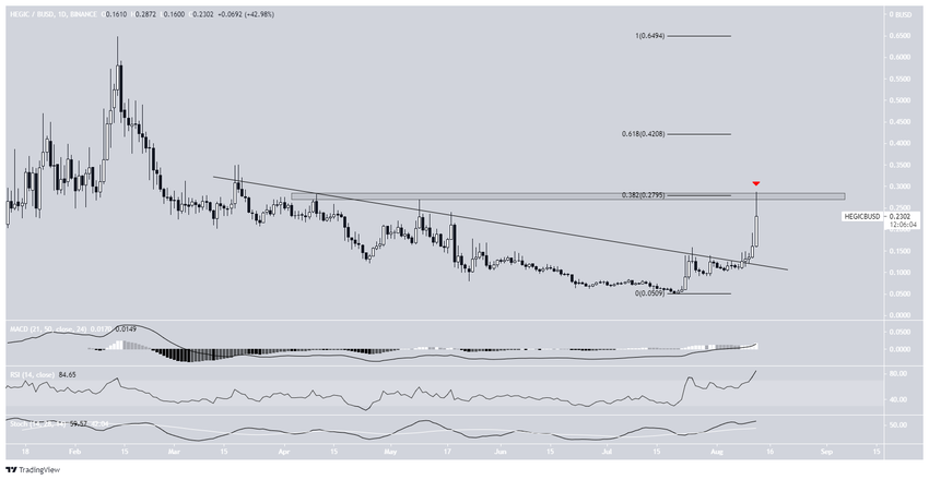 Cho đến nay, HEGIC đã chinh phục được mức đỉnh 0.28 USD diễn ra vào ngày 12 tháng 8.