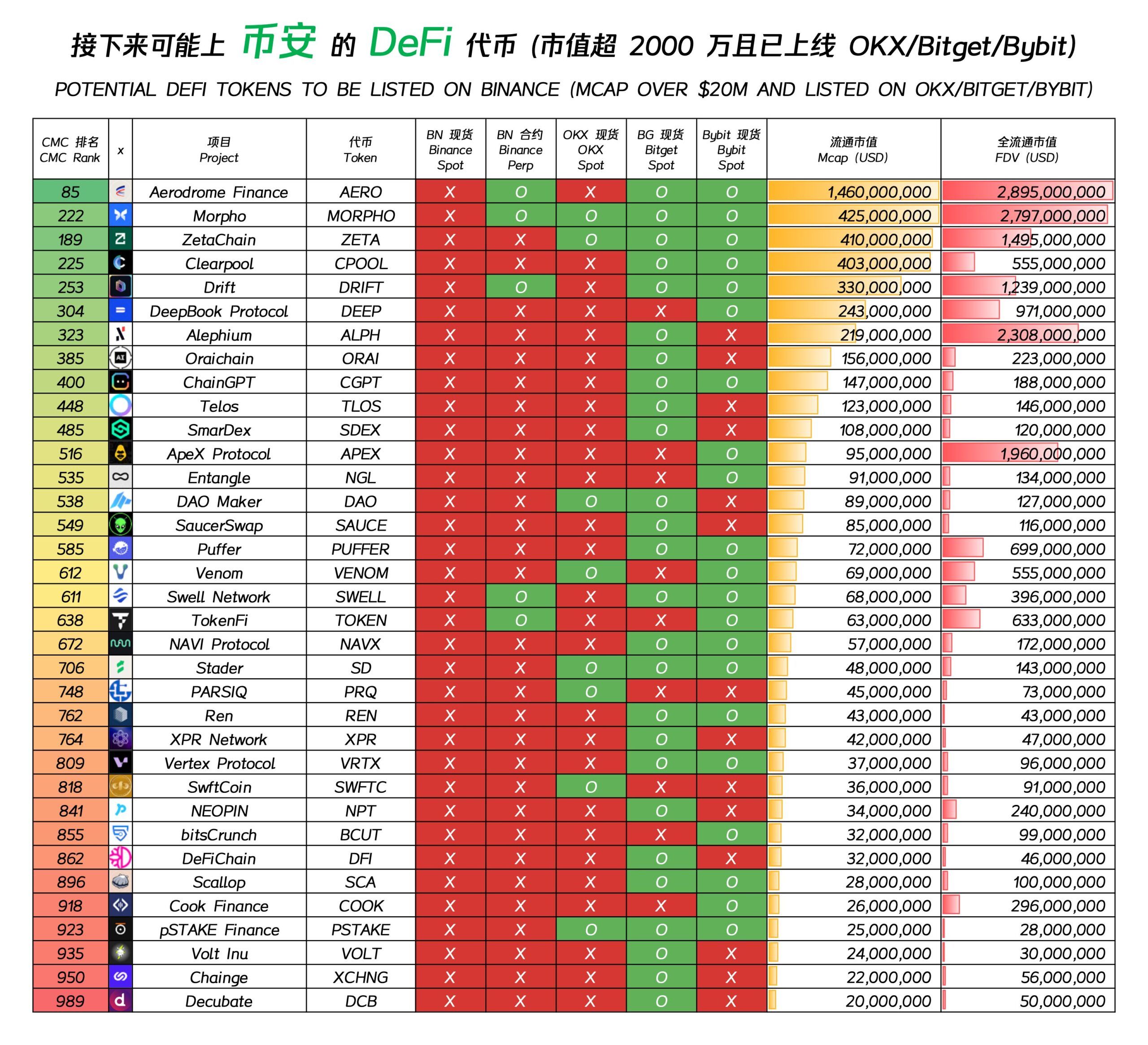 Nhà đầu tư 杀破狼 WolfyXBT đã nhận thấy cơ hội từ “hiệu ứng Binance” trong mùa này và lọc ra một danh sách 35 Altcoin có vốn hóa từ 20 triệu USD trở lên, đã được niêm yết trên các sàn như OKX/Bitget/ByBit nhưng vẫn chưa được niêm yết Binance.