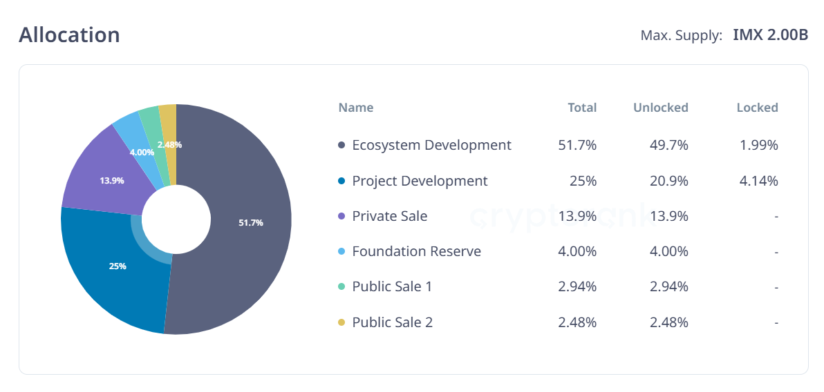 - Nguồn cung lưu hành hiện tại: 1.8 tỷ IMX