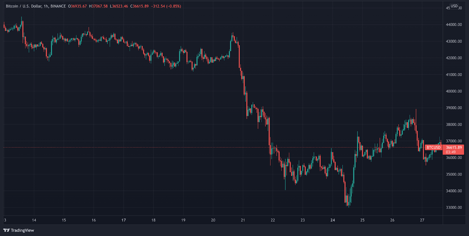 BTC hiện đang giao dịch dưới 37,000 USD.