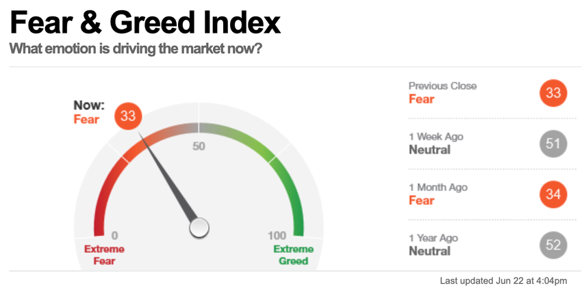 Chỉ báo hiện đang ở trong vùng sợ hãi cực độ. Thị trường đang rơi vào trạng thái hoảng loạn. Chỉ số đã giảm 13 điểm trong ngày và 28 điểm trong tuần.