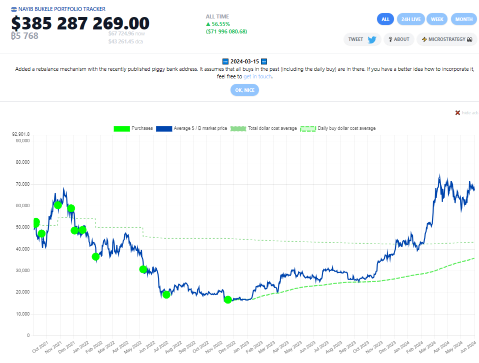 Bukele đã được mệnh danh là “chủ tịch Bitcoin đầu tiên” bởi nhiều người trong ngành. Vào năm 2021, ông đã biến Bitcoin thành một loại tiền tệ hợp pháp sau khi thông qua “Luật Bitcoin” lịch sử. Kể từ đó, công dân đã có thể sử dụng Bitcoin cho hàng hóa, dịch vụ và thuế. Ngoài ra, quốc gia này kiếm được tài sản kỹ thuật số hàng đầu thông qua các dịch vụ khác nhau, bao gồm chương trình hộ chiếu công dân, khai thác mỏ và các dịch vụ của Chính phủ, chuyển đổi Bitcoin sang đô la Mỹ cho các doanh nghiệp địa phương.