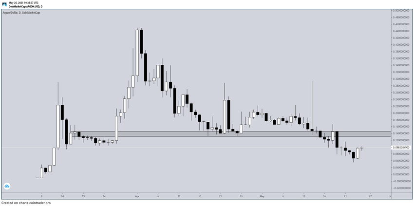 ARGON đã giảm kể từ ngày 1 tháng 4, khi đạt mức giá ATH là 0.449 USD. Bên cạnh đó, nó cũng đã giảm xuống dưới vùng hỗ trợ 0.135 USD.