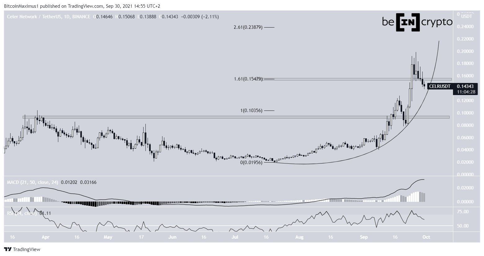 CELR đã tăng cùng với đường hỗ trợ tăng dần theo hình parabol kể từ ngày 20 tháng 7. Trong đà tăng này, CELR đã đạt được mức đỉnh mới tại 0.198 USD vào ngày 16 tháng 9.