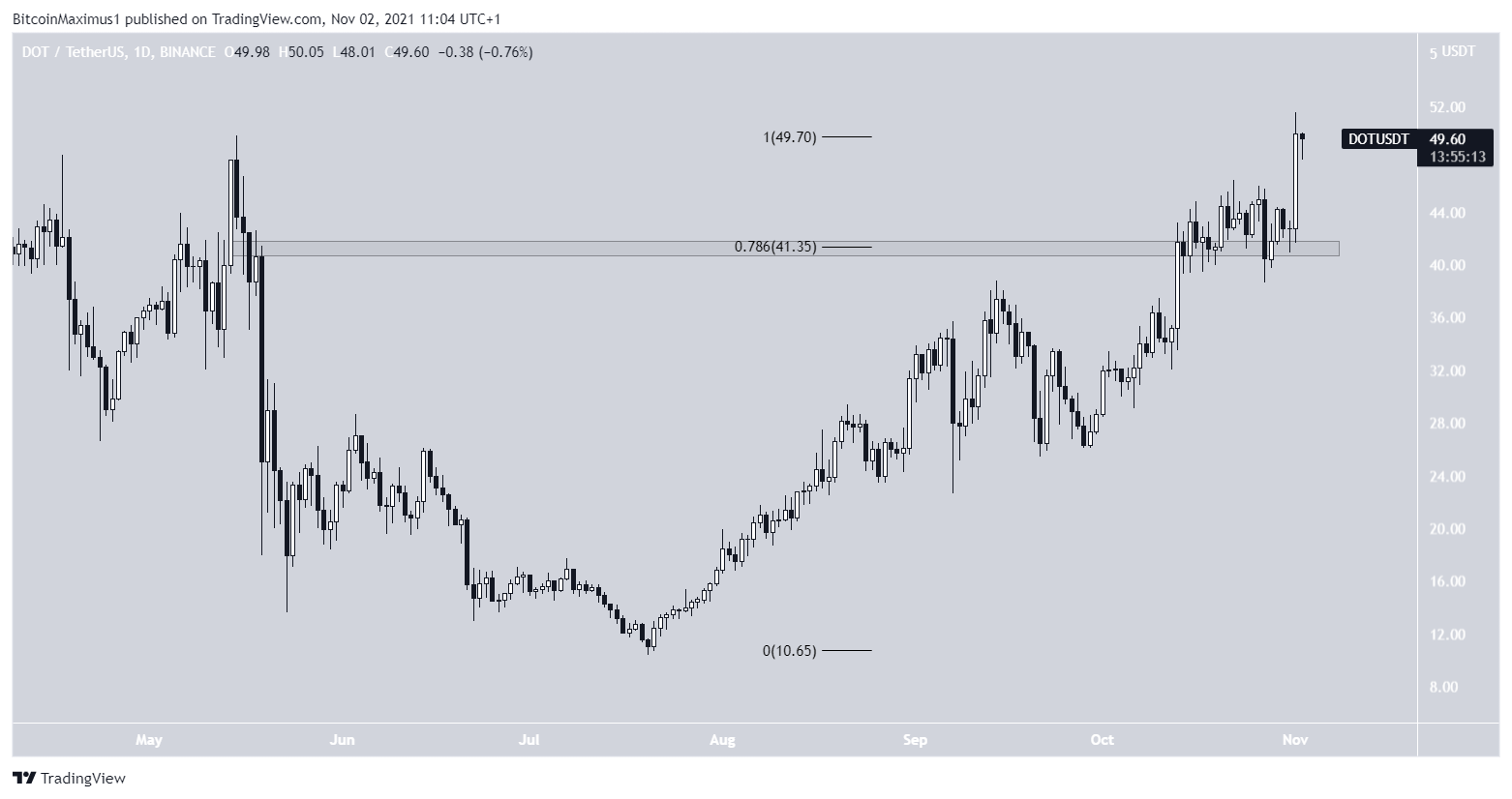 Vào ngày 1 tháng 11, giá DOT đã đạt mức đỉnh mới là 51.57 USD.