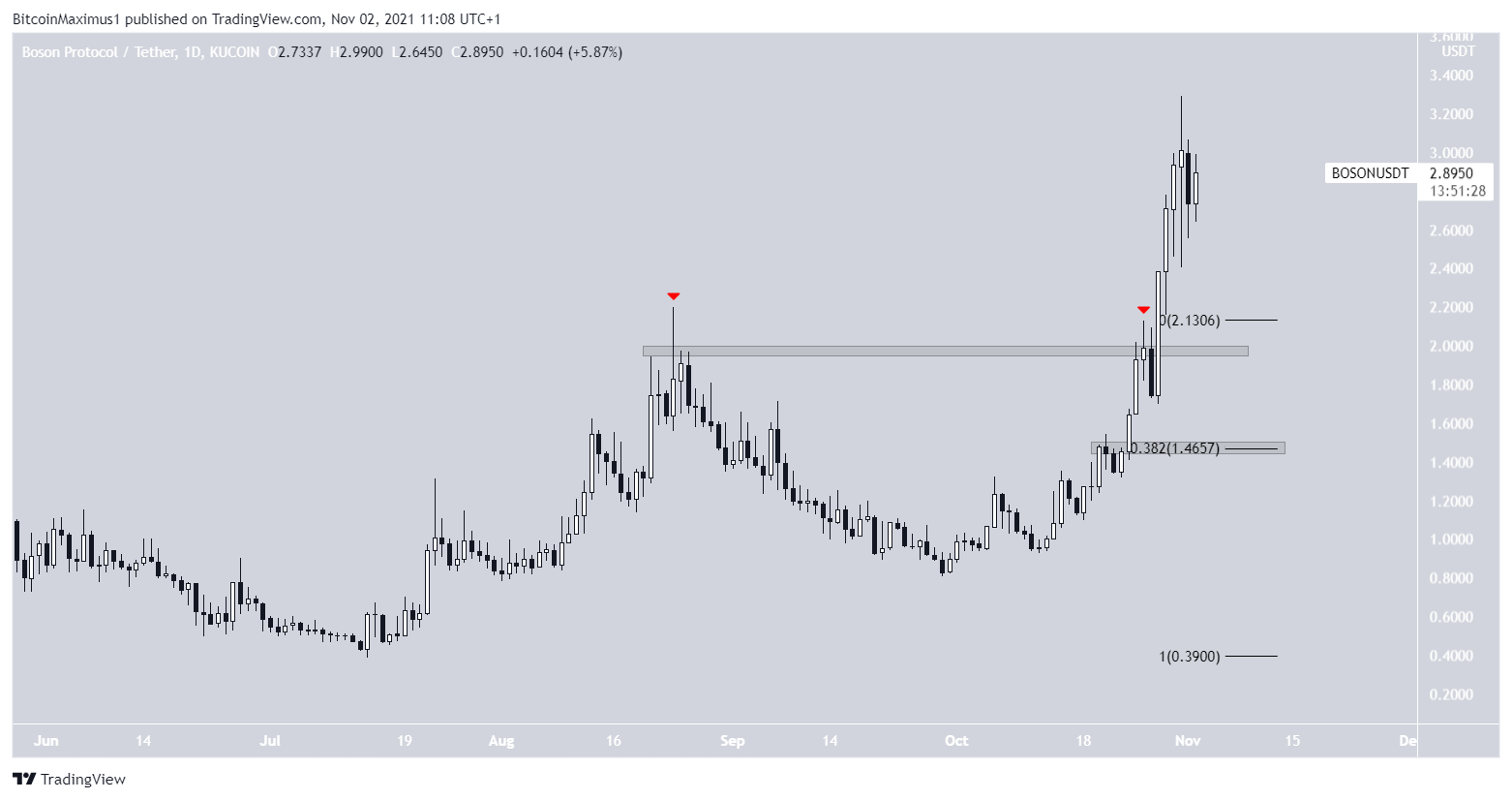Cho đến nay, giá BOSON đã đạt mức cao nhất là 3.29 USD, làm như vậy vào ngày 31 tháng 10.