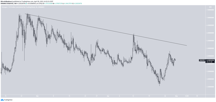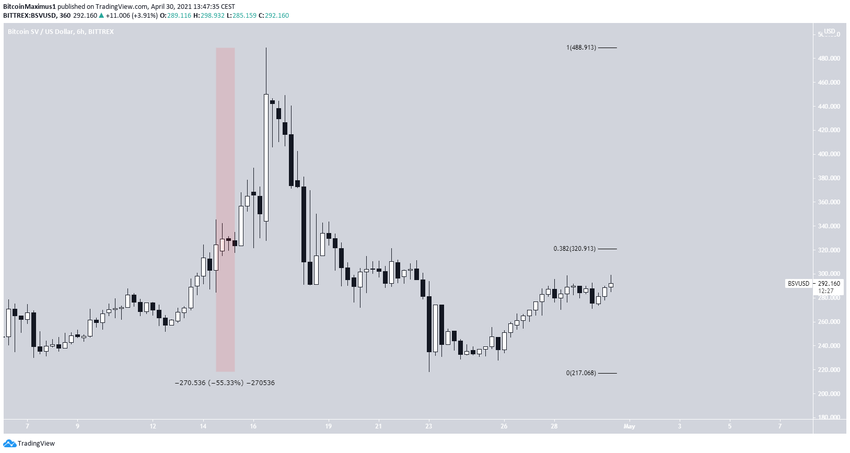 Kể từ ngày 16 tháng 4, BSV đã phải chịu một đợt giảm mạnh. Chỉ trong vòng 7 ngày, nó đã mất 55% giá trị. Sau đó BSV đã tăng lên. Tuy nhiên tương tự như NEO, BSV vẫn chưa thể vượt lên trên mức Fibo kháng cự thoái lui 0.382