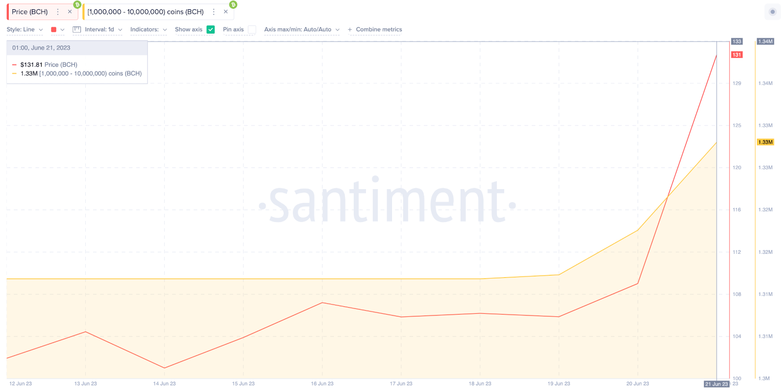 Từ ngày 18 tháng 6 đến ngày 21 tháng 6, các cá voi đã mua 20,000 BCH trị giá khoảng 2.64 triệu USD.